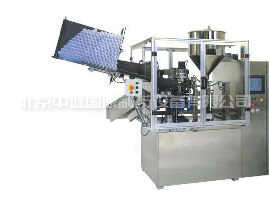 把待生產(chǎn)的鋁管整齊地放置在管斗上,通過(guò)自動(dòng)上管裝置,自動(dòng)插入杯座(定位模)內(nèi),杯座隨轉(zhuǎn)盤轉(zhuǎn)動(dòng),分別停留在不同的工位上。將需要灌裝的膏劑投入可封閉的錐形料桶內(nèi),通過(guò)與料桶直接相連的柱塞式定量灌裝閥,準(zhǔn)確自動(dòng)地注入間歇停留在灌裝工位上的鋁管內(nèi),轉(zhuǎn)盤繼續(xù)轉(zhuǎn)動(dòng),將已注有膏劑的鋁管迅速帶到不同的封尾工位上,各工位的機(jī)械手立刻將管尾封住。通過(guò)調(diào)節(jié)容量調(diào)節(jié)表可獲得不同的灌裝容量,通過(guò)更換不同的機(jī)械手可完成鋁管等金屬鋁管的兩折邊、三折邊、馬鞍形折邊等不同的折邊形式的封尾工作。封尾完成后,打字碼機(jī)械手自動(dòng)將生產(chǎn)日期、生產(chǎn)批號(hào)等字碼打印在管尾上,經(jīng)自動(dòng)出管結(jié)構(gòu),成品管被自動(dòng)送入盛管容器內(nèi)。